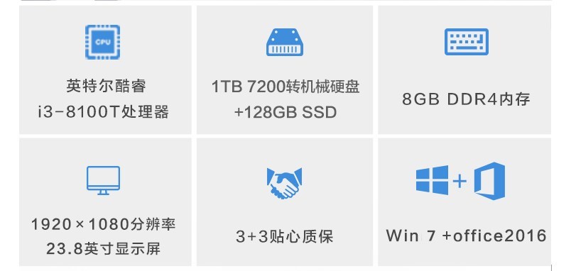 參數 [光驅類型] 無光驅 [顯卡類型] 集成顯卡 [顯示屏尺寸] 23.8英寸 [操作系統] 預裝Windows 10 [內存容量] 8GB [顯存容量] 共享系統內存 [硬盤容量] 1TB固態硬盤 [CPU型號] Intel 酷睿I3-7020U