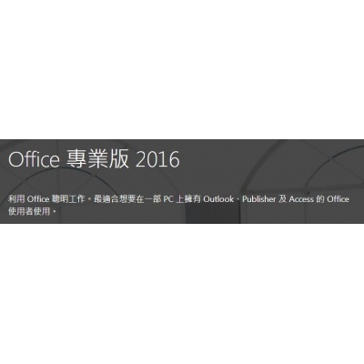 Word 2016、Excel 2016、PowerPoint 2016、OneNote 2016、Outlook 2016、Publisher 2016 和 Access 2016。