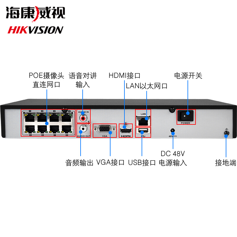 海康威視DS-7808NB-K1/8P 8路POE監(jiān)控高清網(wǎng)絡硬盤錄像機 H265