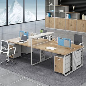 辦公桌椅組合四人位簡約現代辦公家具職員桌屏風工位辦公桌 原木胡桃+暖白 四人位(含柜)