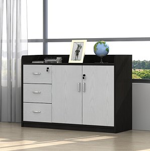 辦公家具板式文件柜矮柜茶水柜儲物柜帶鎖木質辦公柜檔案柜資料柜打印機柜子書柜 2400*400*800黑白柜板門